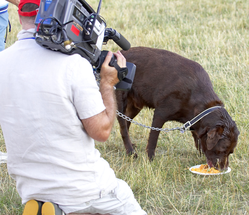 Victoria did a piece on the houndog hamburger, paw lickin' pizza, dog food, cake and cookies
